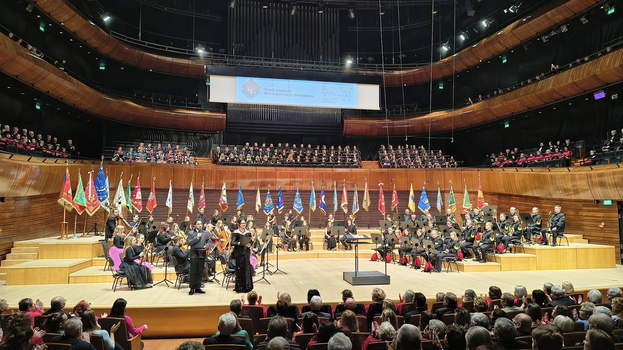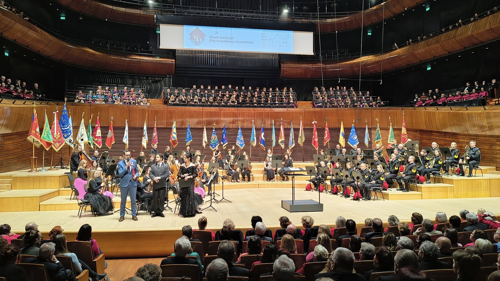 Lutniści z dumą ustawili na scenie swój sztandar. Wspólnie z pozostałymi dawał świadectwo siły i mocy Śląskiego Związku Chórów i Orkiestr działającego od 115 lat.